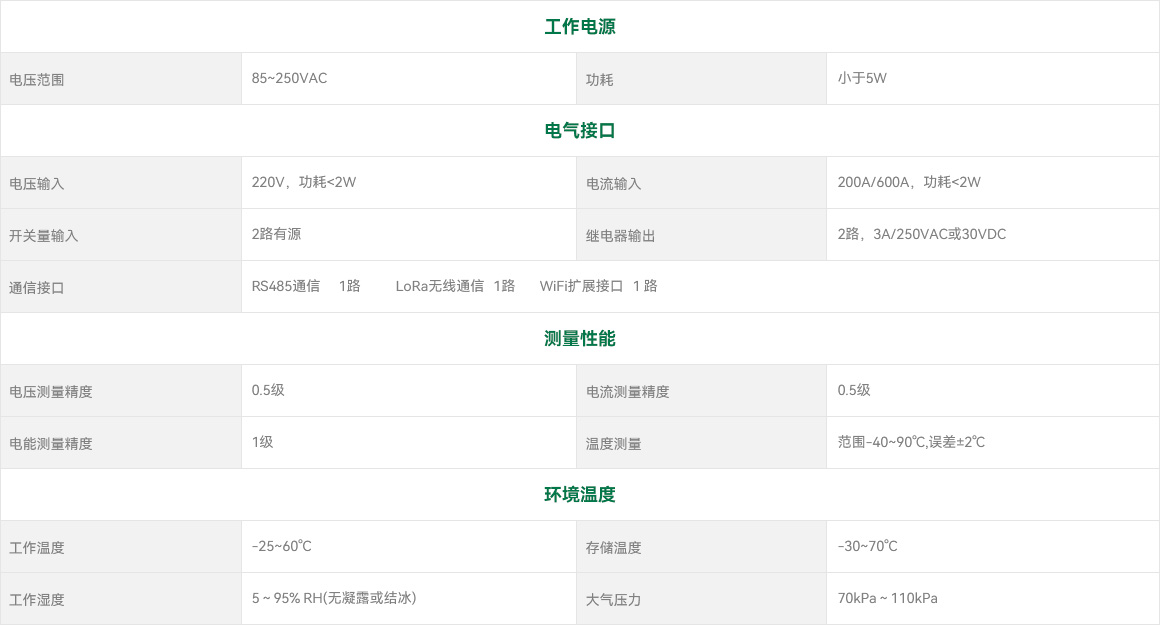 相/线电压、电流、功率因数、有功功率、无功功率、视在功率、有功电度、无功电度、温度以及电压电流的31次奇次谐波