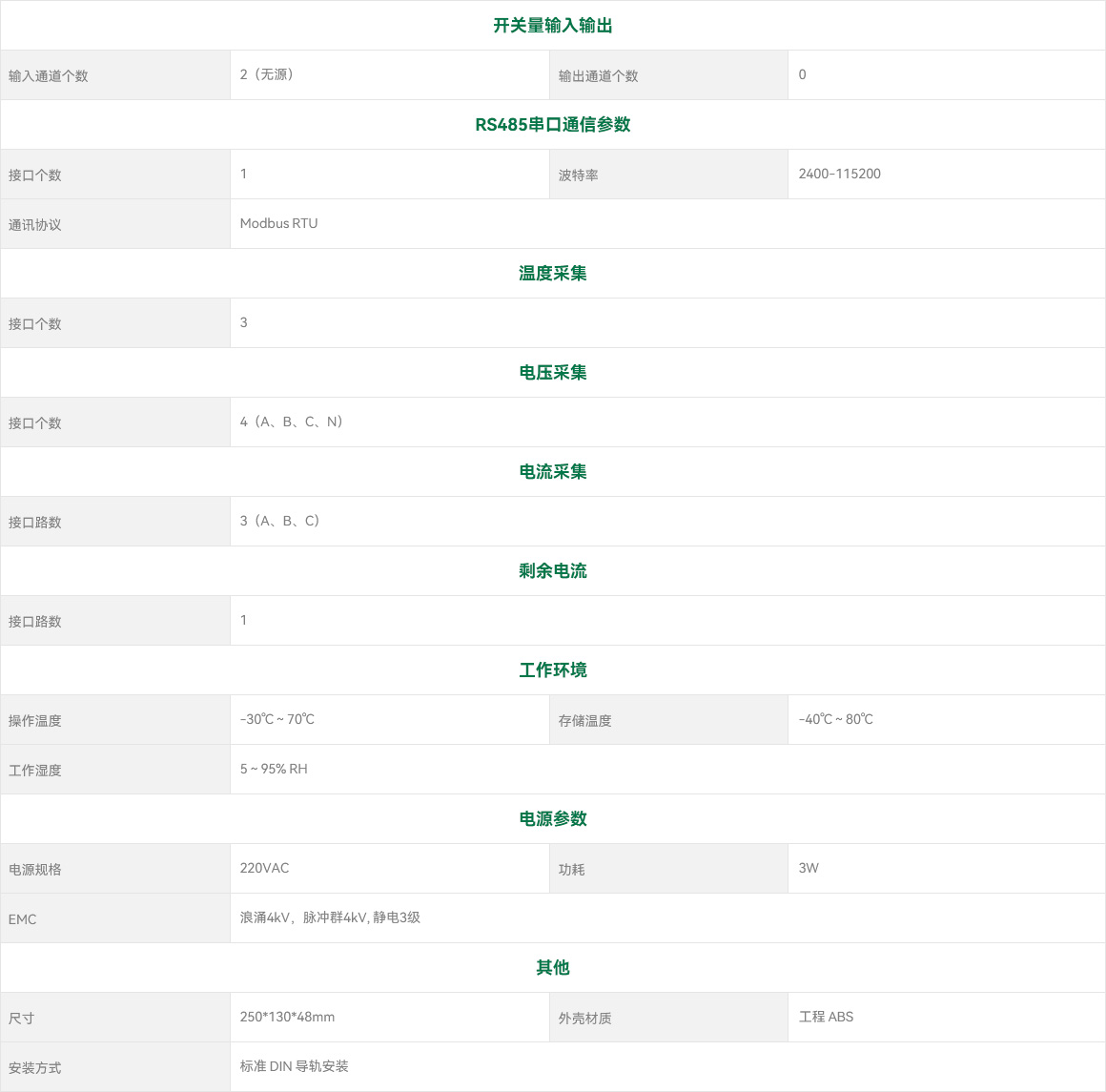 具备3路温度传感器测量接口,可测量铜排、节点或是变压器温度,无需另外配置温度采集模块,方便安全、实用、高效