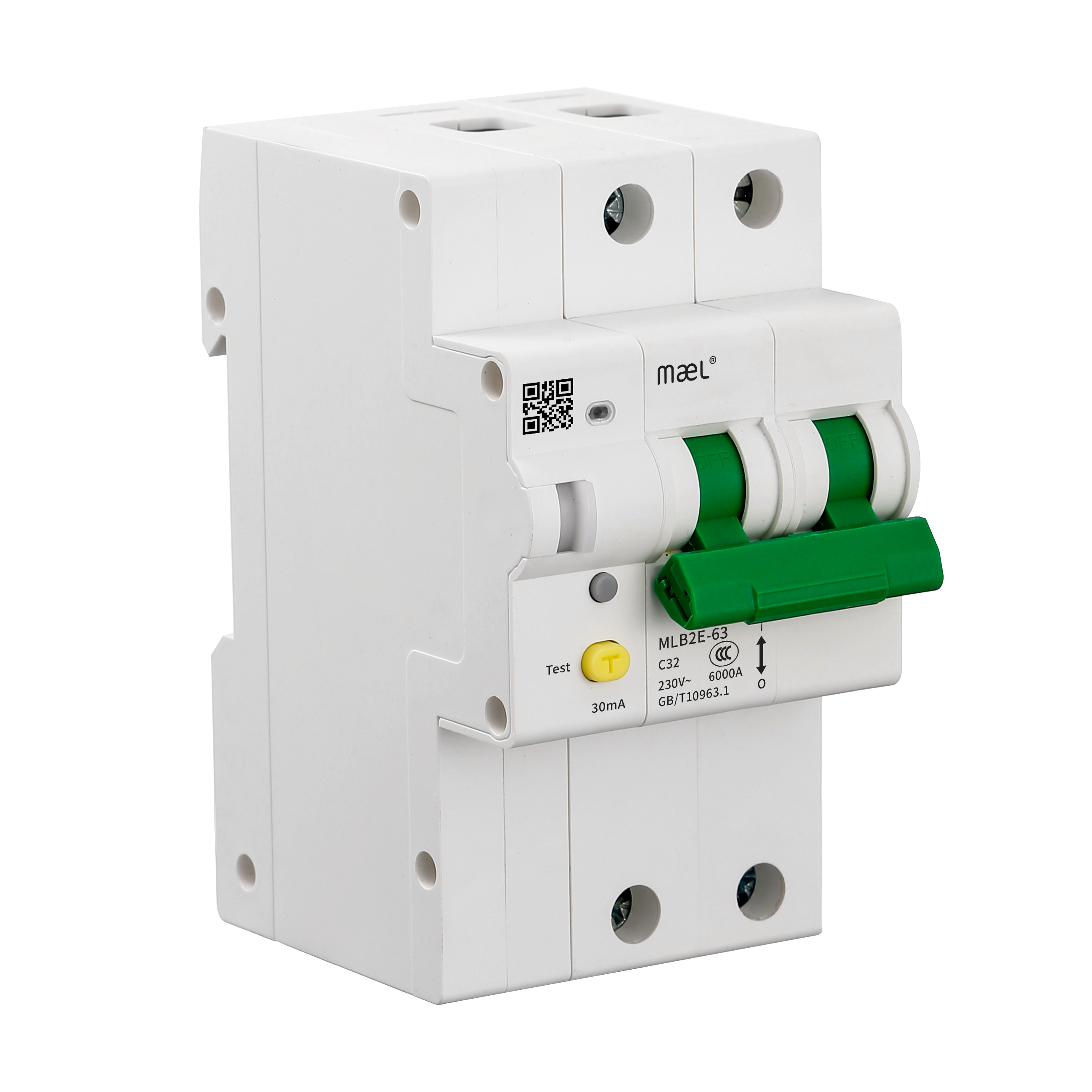 MLB2E-63/2断路器适用于交流50/60Hz,额定电压 230V,额定工作电流至63A的线路中,可本地手动分合,也可通过手机小程序及云平台远程控制,实时监测线路中电流、电压、功率、频率、温度、用电量等参数。对过压、欠压、过载发送预警,并实行自动断电保护,保障用电安全。