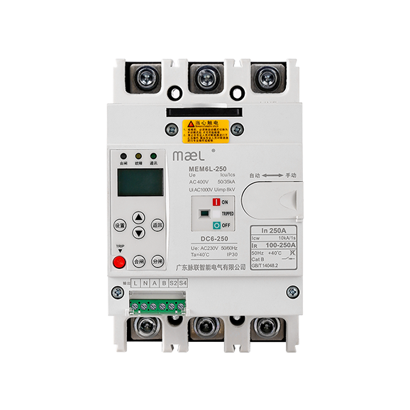 MEM6LE系列剩余电流动作断路器(以下简称断路器),是本公司采用国际先进设计和制造技术研制开发的新型断路器。可以面向分布式光伏应用场景或者JP柜应用场景,安装在AC220/380V配电网并网点实现配电安全生产应用的,具备过载长延时反时限、短路短延时反时限、短路短延时定时限、短路瞬时、欠电压保护,被动孤岛保护,剩余的电流保护,电气量的采集测量、告警、状态监测、统计,支持与台区智能融合终端信息交互,并可接收相关控制指令实现分合闸操作,具备对光伏并网点的常规电气保护以及光伏并网专用保护等主要功能的专用低压断路器。