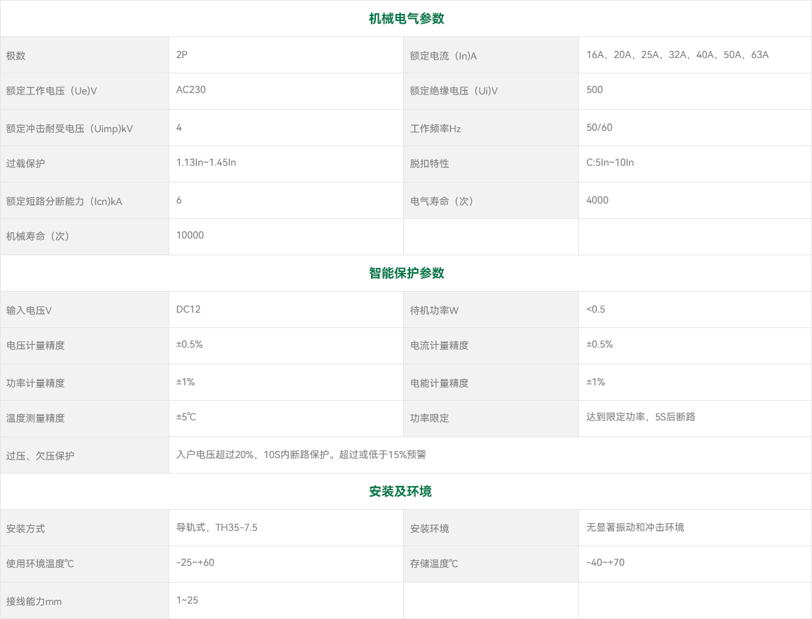 MLB2E-63/1断路器适用于交流50/60Hz,额定电压 230V,额定工作电流至63A的线路中,可本地手动分合,也可通过手机小程序及云平台远程控制,实时监测线路中电流、电压、功率、频率、温度、用电量等参数。对过压、欠压、过载发送预警,并实行自动断电保护,保障用电安全。
